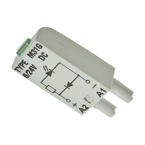 Зелен светодиоден и защитен модул, 24/60V DC, за монтаж на цокли тип GZM80, GZT80, GZM2, GZT2, GZM3, GZT3, GZM4, GZT4, обратен диод за защита на бобината от обръщане на напрежението.